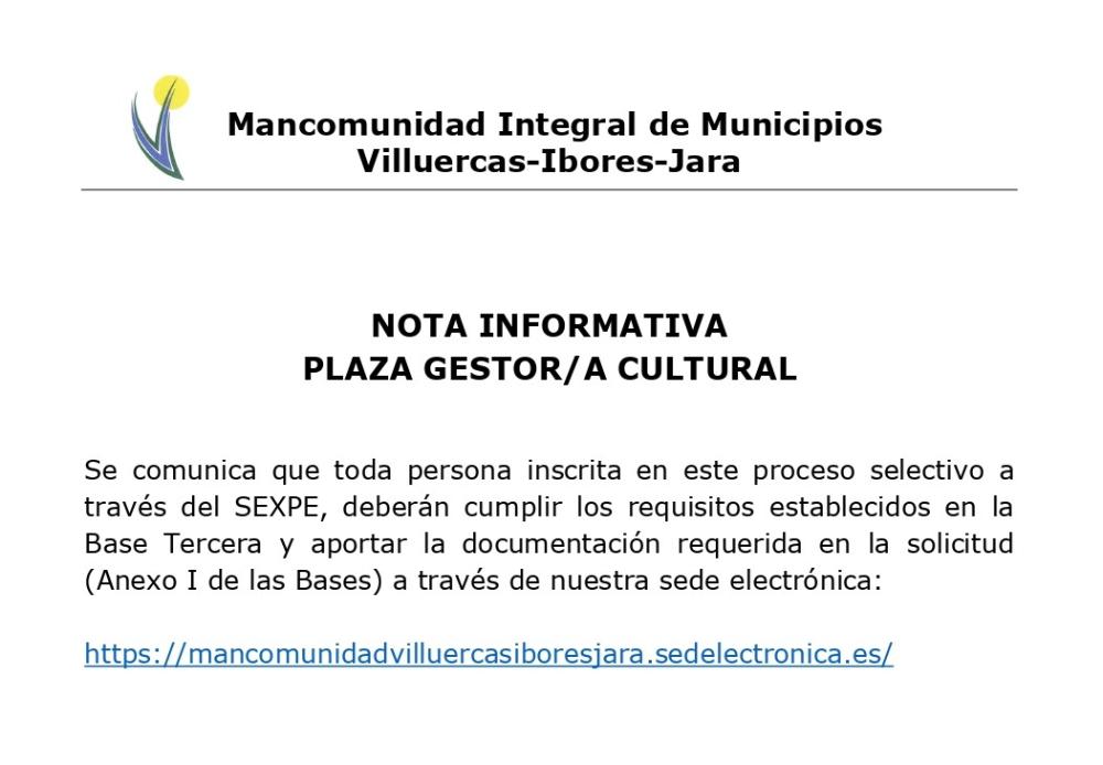 Nota informativa para la plaza de Gestor/a Cultural.