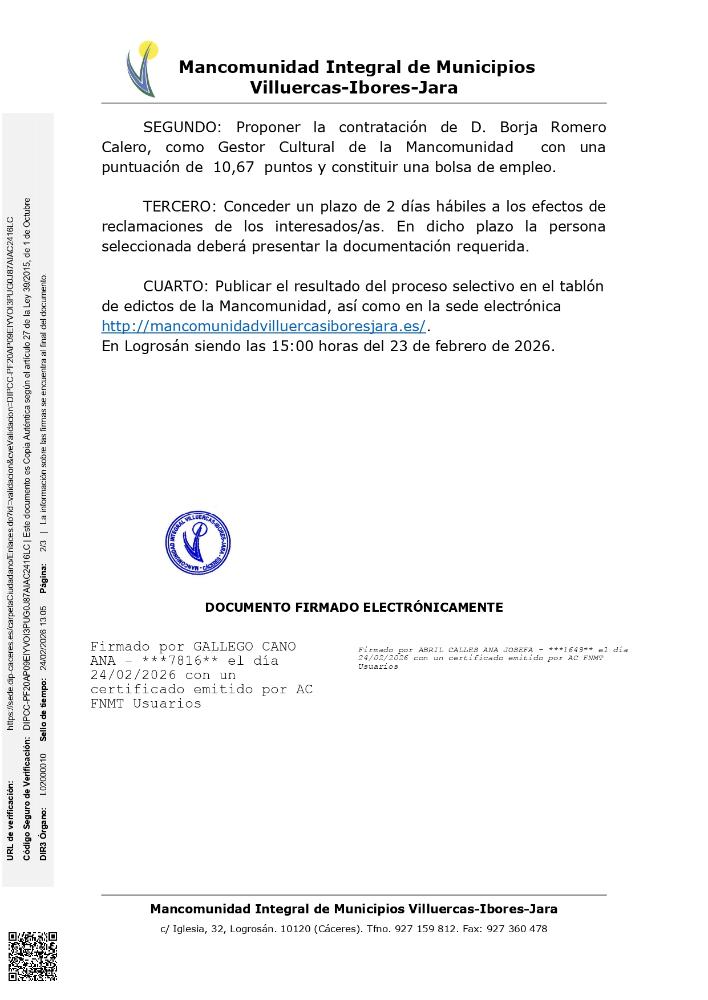 Acta del grupo mixto para selección de una plaza de Gestor/a Cultural. 24 febrero 2026 Documentos Acta de seleccion Gestor Cultural VIJ.pdf (pdf 147,9 kB)
